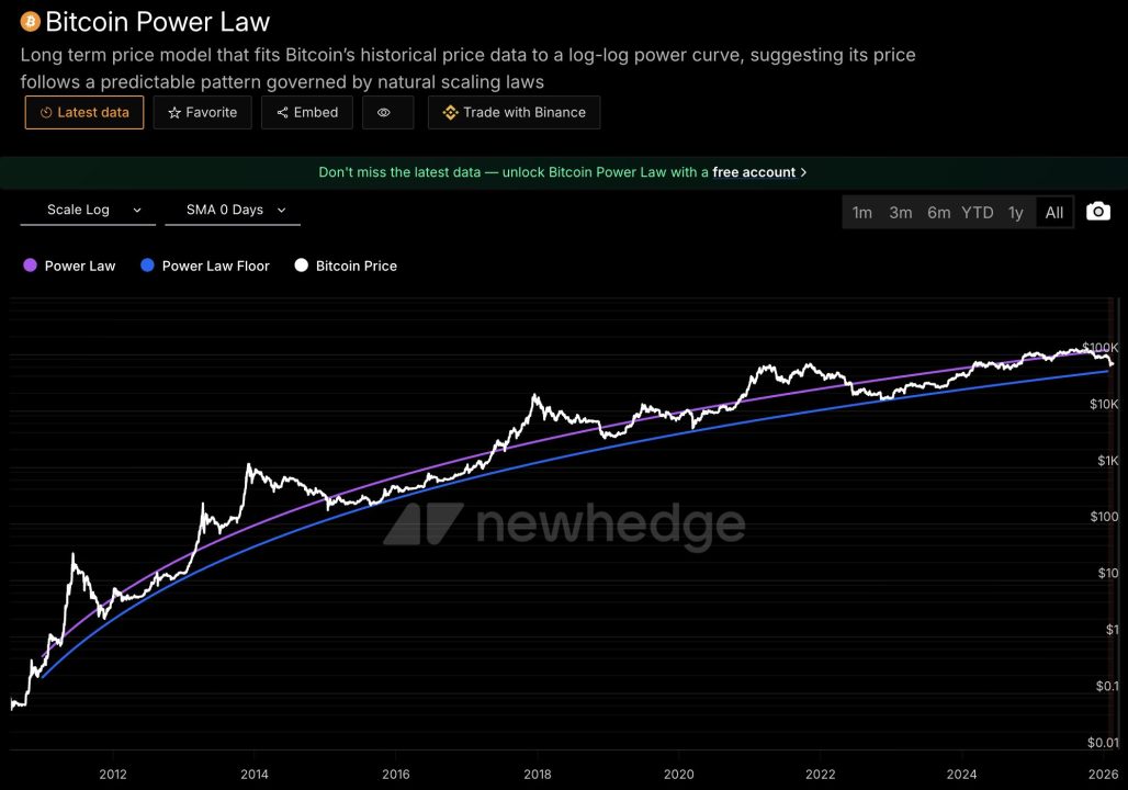 ビットコイン(BTC)の長期的な価格推移を予測するパワーロー(Power Law)理論が、2026年末に重大な局面を迎えます。