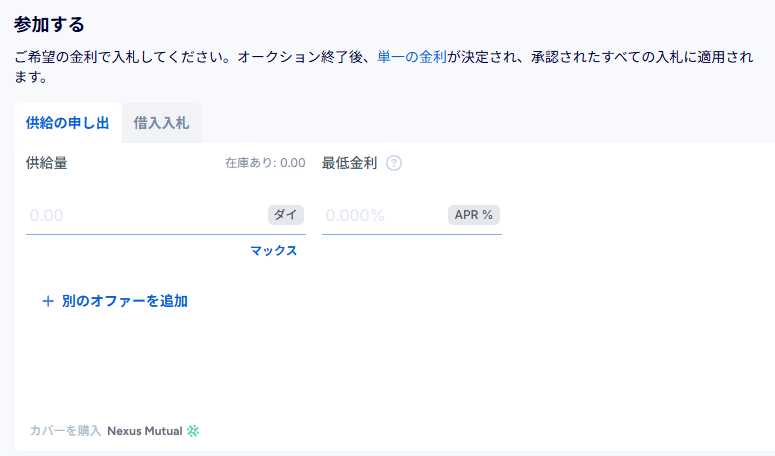 Termの魅力は、オークション形式で金利が決まる固定金利レンディングを体験できる点にあります。貸し手と借り手が希望する金利条件を提示し、マッチした時点で金利が確定する仕組みは、DeFiならではの楽しさがあります。ただし、オークションは周期的に開催されるため、タイミングが合わないこともあります。