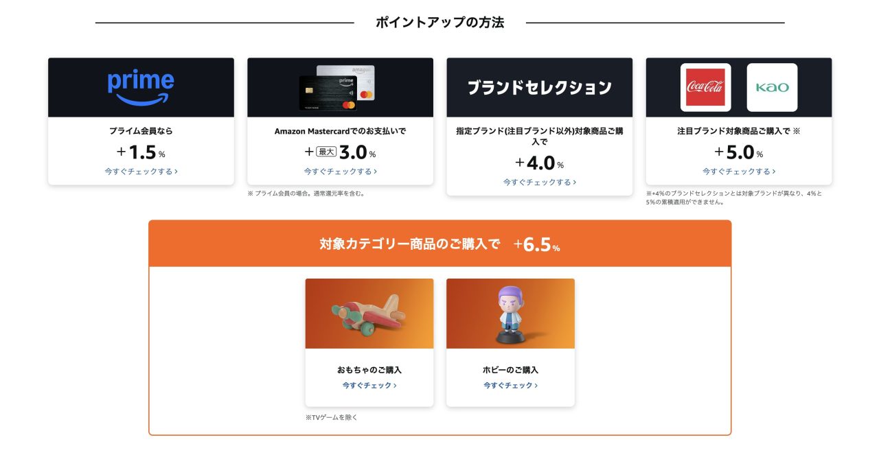 - Amazon Mastercardでの支払いで:最大+3.0%