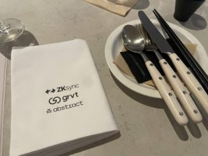 このイベントは、ZKsync、Grvt、Abstract が共同で主催した完全招待制のプライベートディナーで、限られた業界関係者のみが招かれる特別な場であった。
