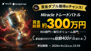 賞金総額約300万円のトレードバトルが仮想通貨取引アプリ「Miracle」で開催中です。