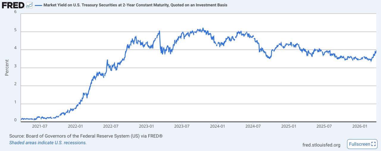 FRBのマイケル・バー理事はインフレが目標を上回る中で金利を当面維持する必要性に言及しました。2年債はFRBの金融政策を最も反映しやすい指標とされ、安全資産とされる国債の需要が揺らぐ現状はビットコインを含むリスク資産への逆風となります。