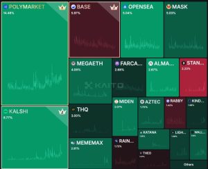 TGE前プロジェクトのマインドシェア。予測市場プロジェクトが大半を占めていることが分かる|画像引用元:Kaito