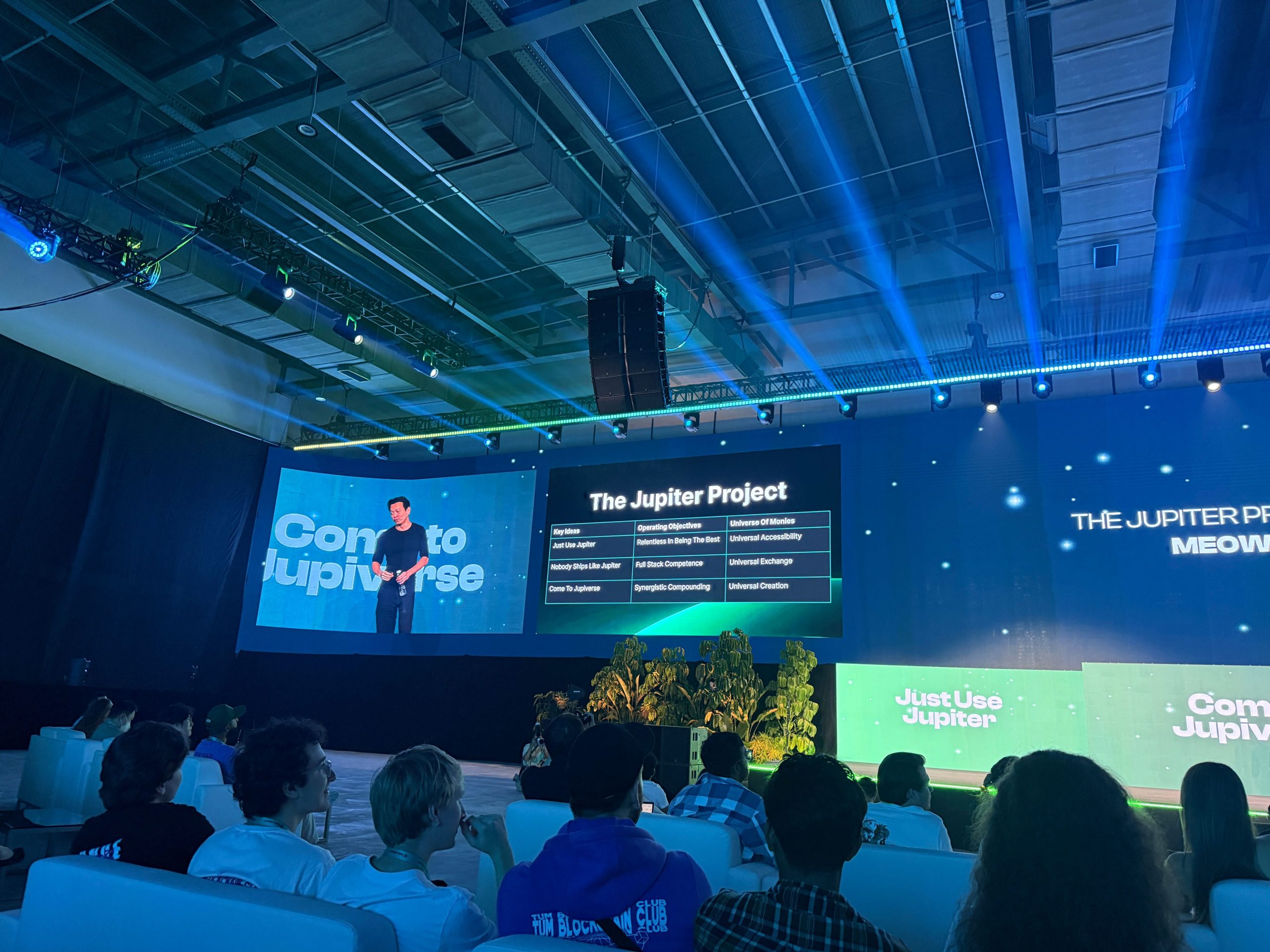 イベントの冒頭、ジュピターはプロジェクトの理念や運営原則、未来の展望をまとめた「3×3マトリックス」を公開。この構想はジュピターが何を目指しどのように運営されているかを明確にするための指針であり、最終的には誰もが平等に金融機会へアクセスできる「ユニバーサル・マネー(普遍的な貨幣)」の実現を目標としています。