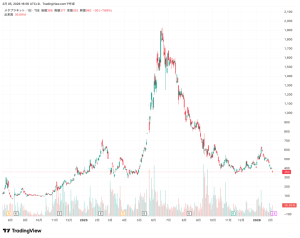 2月5日時点のBTCに関する含み損は約1,703億円と試算されており、BTC価格がさらに下落すれば含み損は拡大します。新株予約権の行使価額は547円に設定されており、現在の株価360円とは大きな乖離があります。市場は同社の財務戦略の真価を試す局面が続いています。