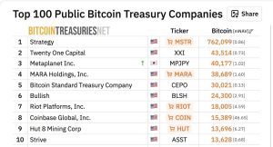 ビットコイントレジャリー企業の保有ランキング|画像引用元:bitcointreasuries.net