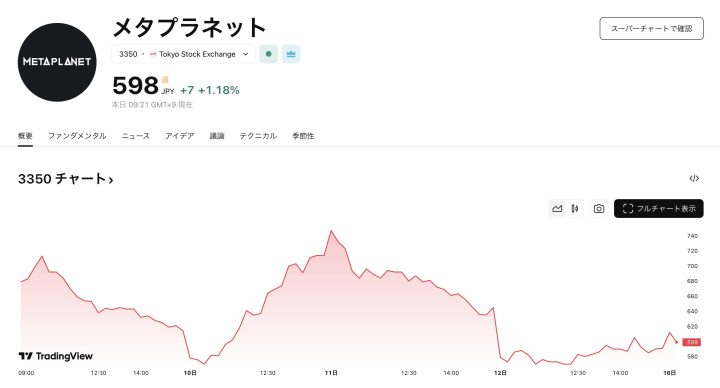 株式会社メタプラネットの株価が600円を巡る重要な局面を迎えています。先週の海外公募における発行価格決定を受け、株価は下落基調にあり、今後の動向が注目されます。