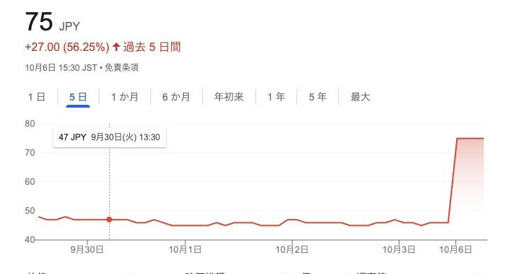 株式会社モブキャストホールディングス(Mobcast Holdings Inc.)の株価が10月6日に急騰し、ストップ高となりました。