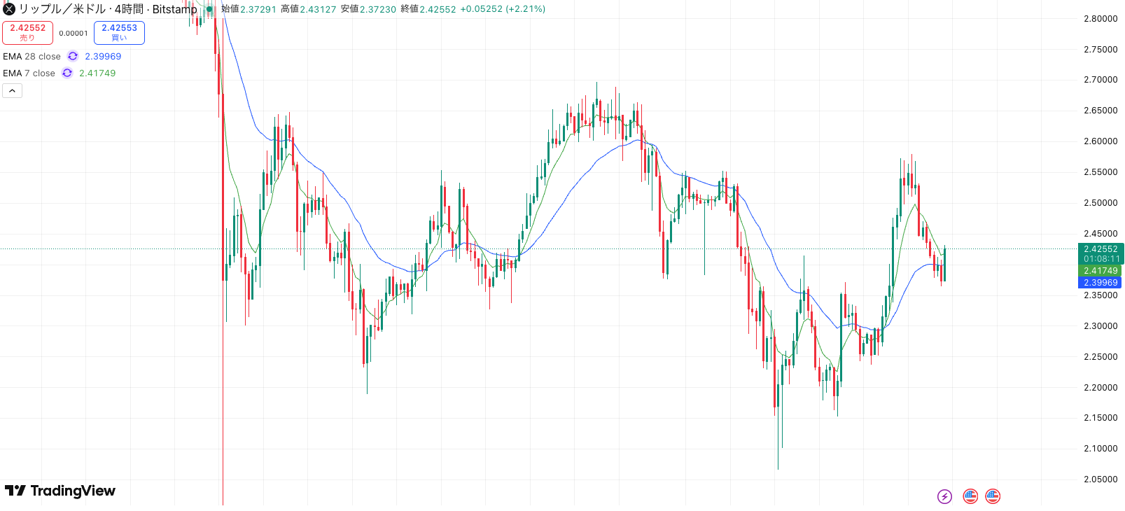 暗号資産リップル(XRP)の価格が重要なテクニカルサポートラインで反発し再び上昇基調を強めています。4時間足チャートでは中期的な支持線が意識された形となっており強気トレンド継続の可能性が示されています。