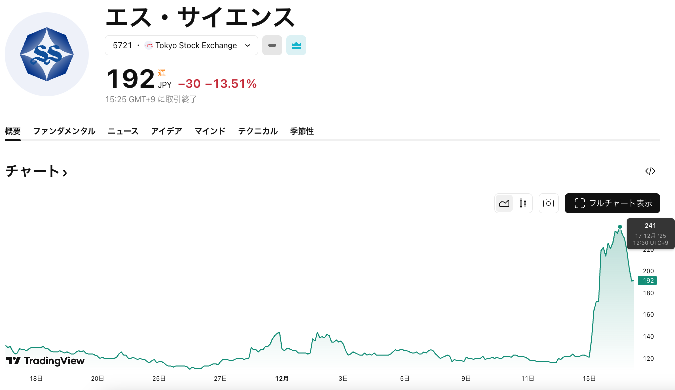 株式会社エス・サイエンス(S Science Company, Ltd.)の株価が連日活況を呈しています。