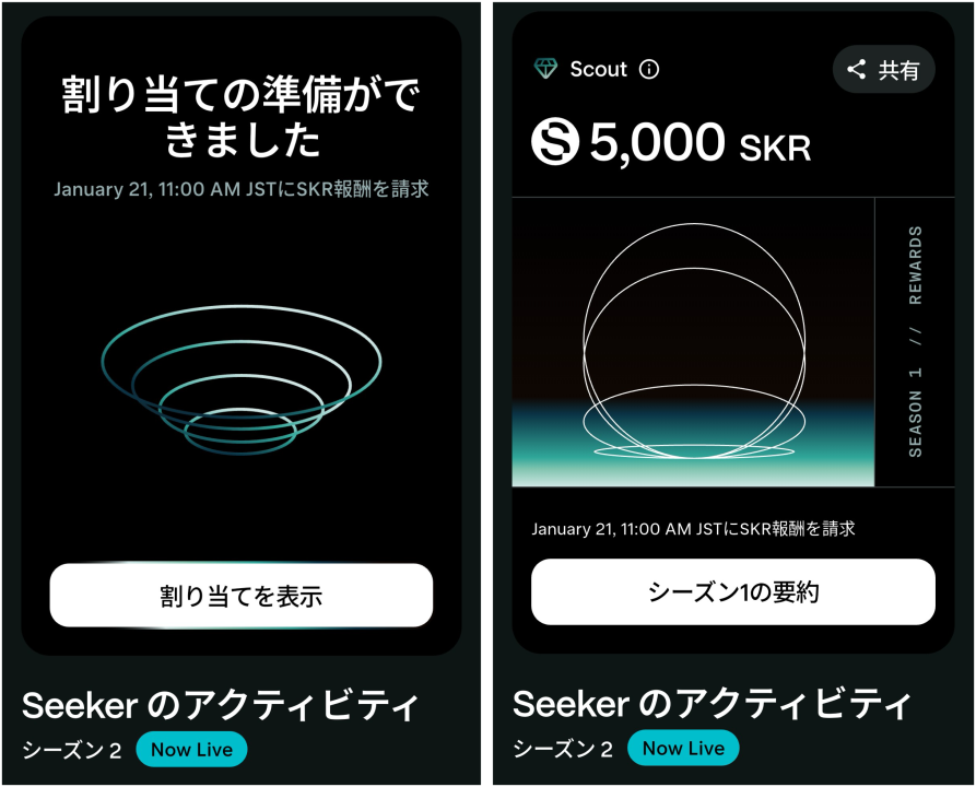 請求可能期間は90日間設定されており、受け取ったSKRは即座にステーキングして報酬を得る運用も可能です。なお、現在は既に「シーズン2」が開始されており同エコシステムのさらなる拡大が進められています。