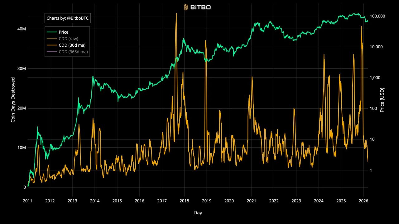 価格推移やデリバティブ市場のデータがノイズになりやすい局面において、コインの年齢に基づいたデータはより本質的な保有行動を示す指標として機能します。