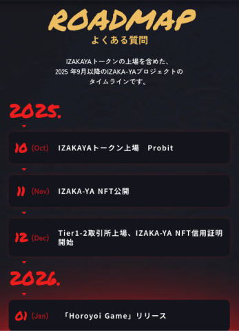- 2025年12月:Tier 1–2取引所上場、Izakaya NFT信用証明機能開始