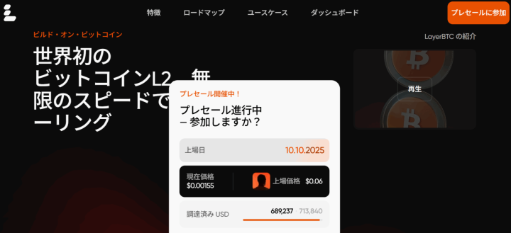 LayerBTCは自社のエコシステムを支えるユーティリティトークン「LBTC」を発行し、その先行販売(ICO)を開始しています。