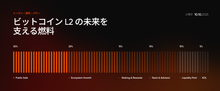 | 販売割合 | 公開販売 30%、エコシステム 25%、その他(チーム、ステーキングなど)45% |