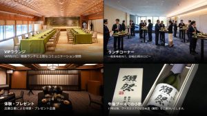 会場内には、VIPラウンジや一般来場者向けランチコーナーのほか、出展企業による体験・プレゼント企画、さらに日本酒(獺祭)の提供なども予定されています。