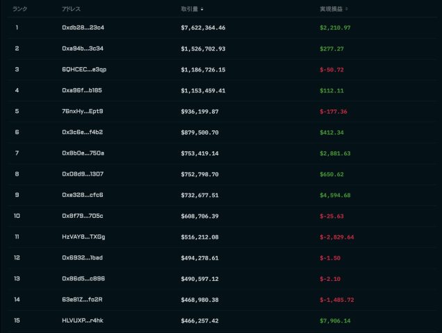 これはHyperliquidでトップを狙うのがほぼ不可能なのに比べ驚異的な状況です。数百ドルの資金でもレバレッジを効かせて取引量を稼ぎ、リーダーボードの上位に食い込めます。
