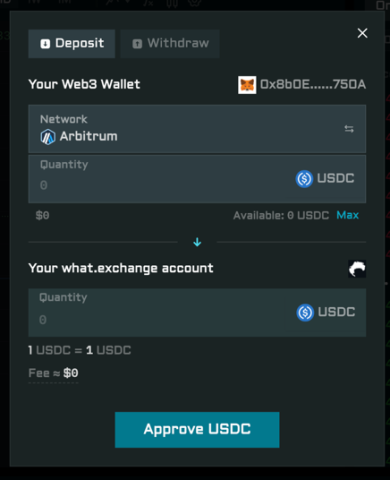 取引の元手となる資金(USDCなど)を入金します。プロセスは非常に分かりやすく数分で完了します。